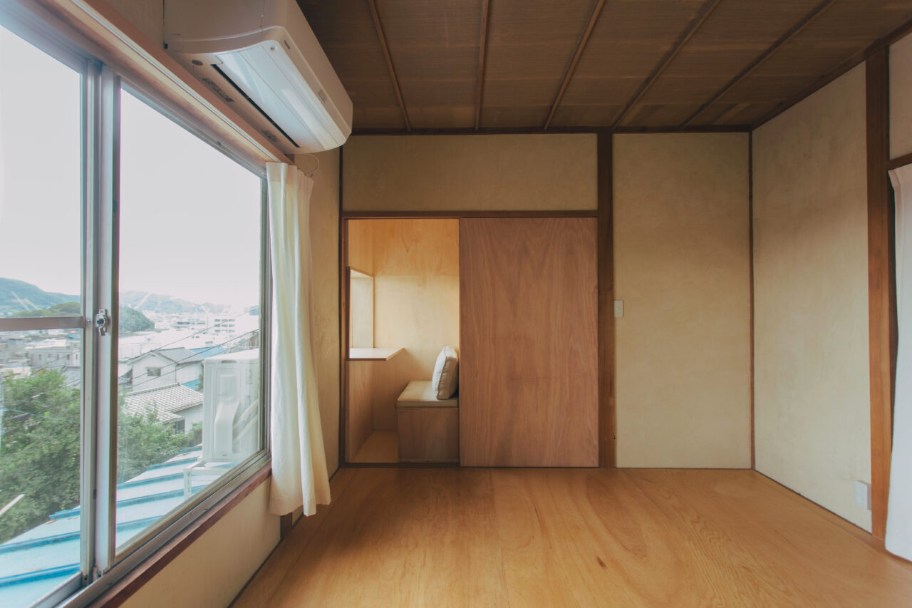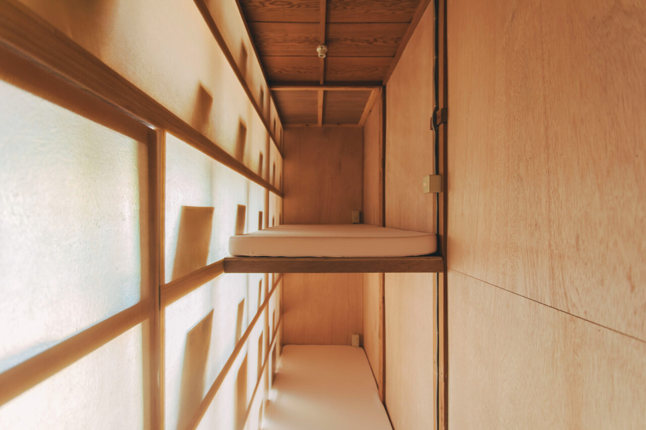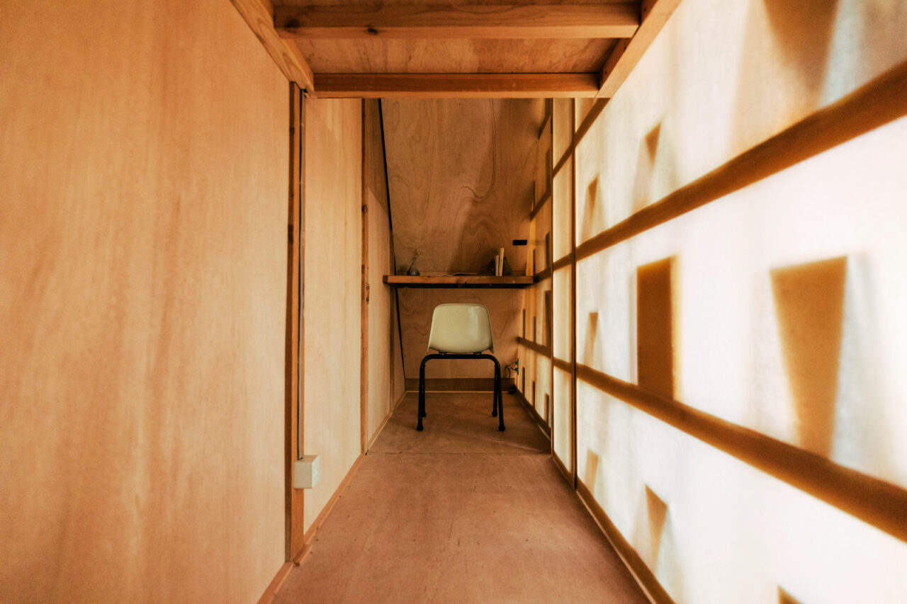 本が生活の空間に溶け込むように、本棚とドミトリーの空間は透過性のあるパーテーションで仕切られ、本の存在がどの場所からも感じられるように心掛けた。