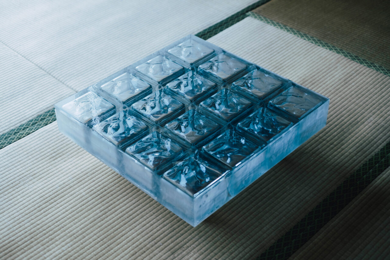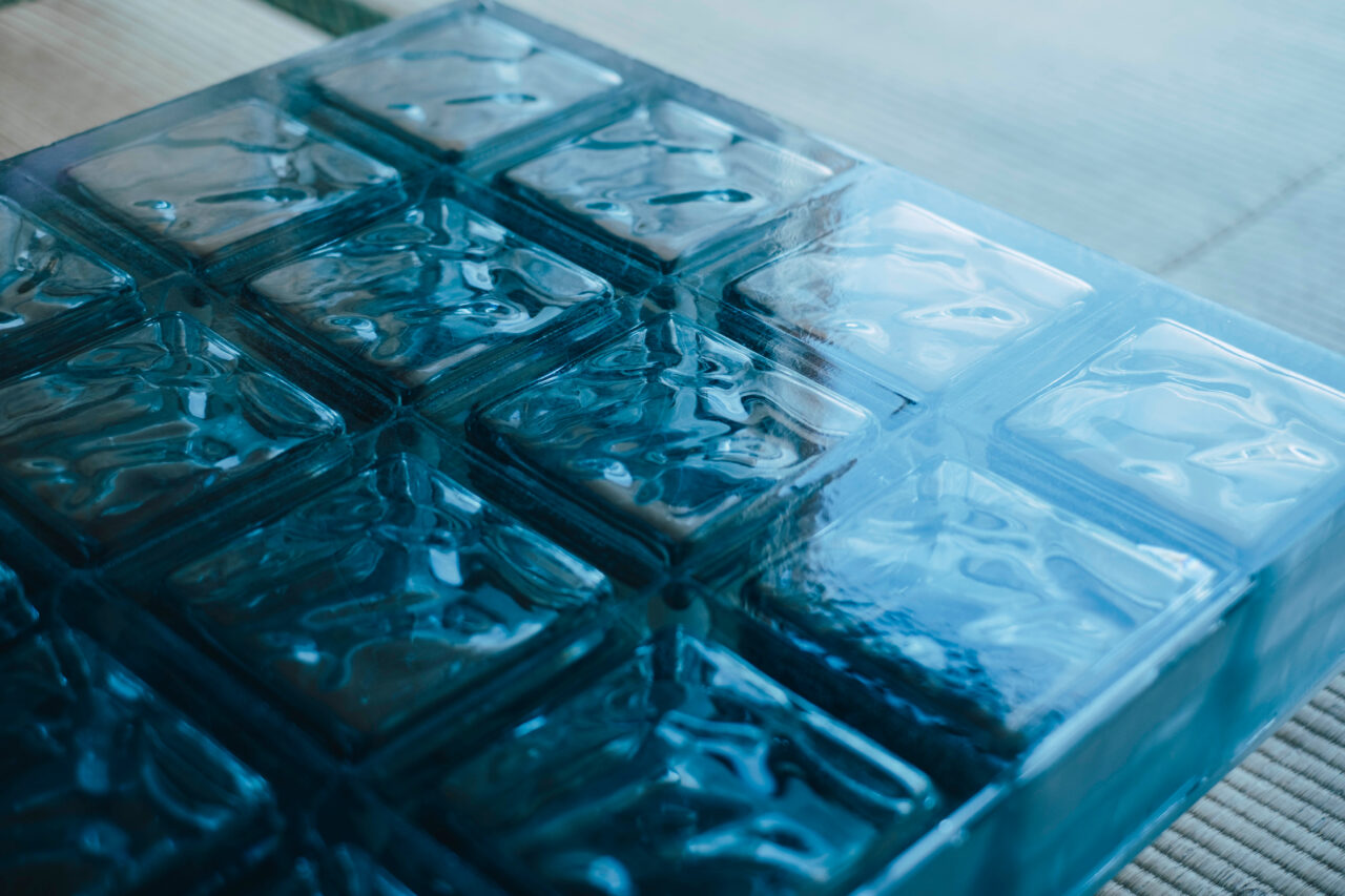 本棚を製作するために使用した材料は、最小限の力で材料を敷地に運ぶことができるように、材料体積・重量を最小限にできるような工法を計画した。本棚の縦、横材は古民家を解体した際の乾燥して軽くなった古材を垂木サイズに細切りにし再利用した。裏板の面材は他のプロジェクトで余っていたポリエステル樹脂とガラス繊維を用いて厚み1.5mmほどの透過性のあるFRPシートを製作して使用した。