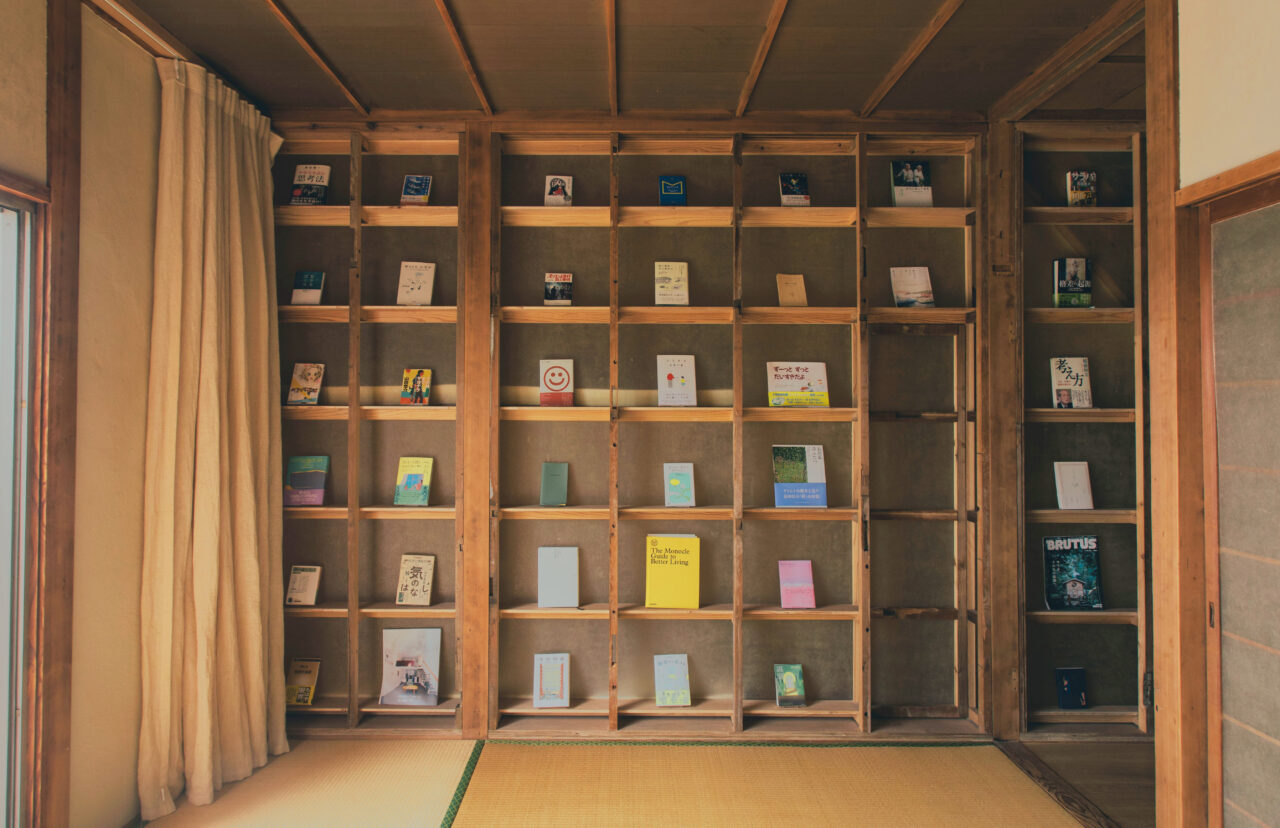 本はただ読み物というだけでない。本が身近にあることによって本の情報が目に入り、本の内容を回想したり、その内容に関連するようなことを自然と話したりすることができる。そんなことがよりおこなわれるように、本棚に余白を持たせることによって、本が展示物のように機能し、人が手に取る前に人と本が向き合う時間を作る。そこから自然と本を介した対話が生まれるような意図をもって設計した。