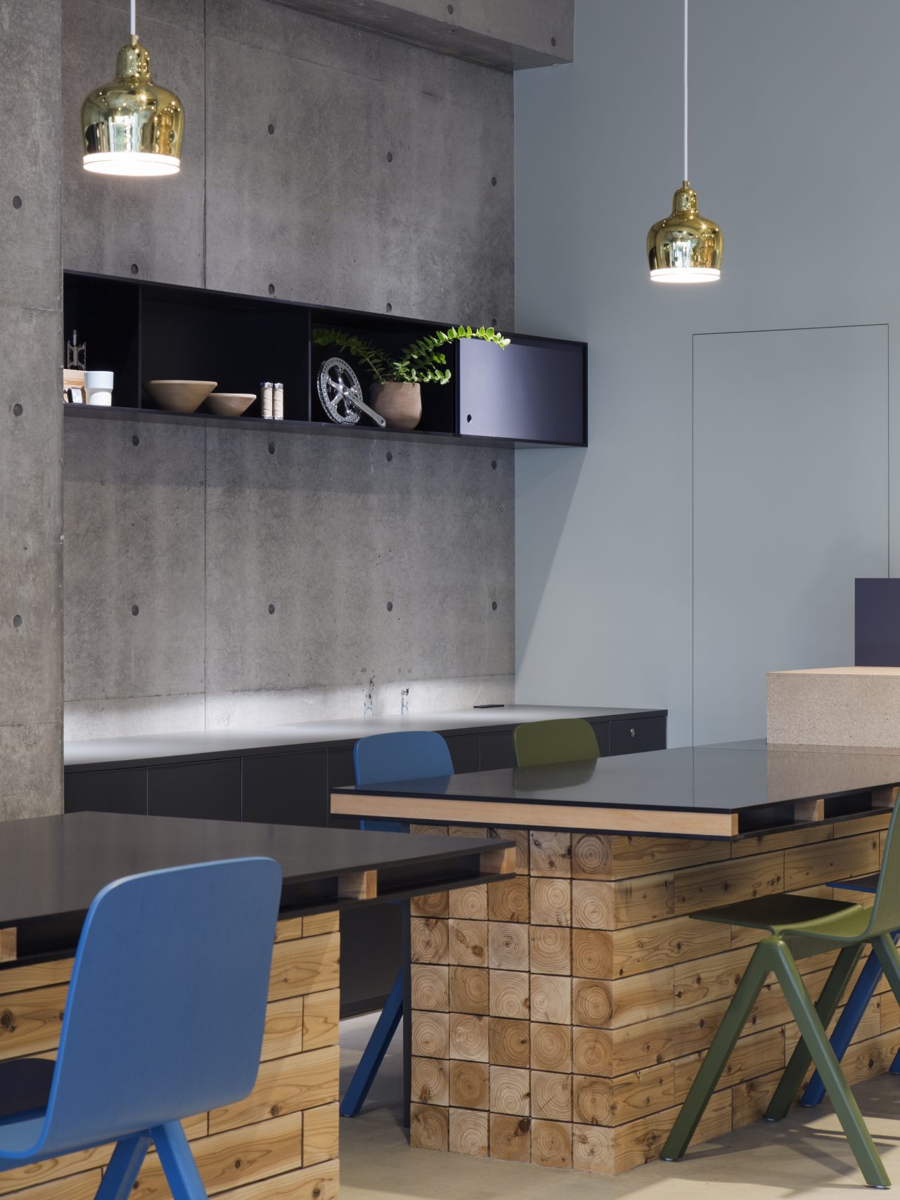 Furniture_chairs (COPENHAGUE CHAIR, COPENHAGUE BAR STOOL / HAY), cafe counter (Leg member: 90x90mm cedar timber, Top board: Black MDF)