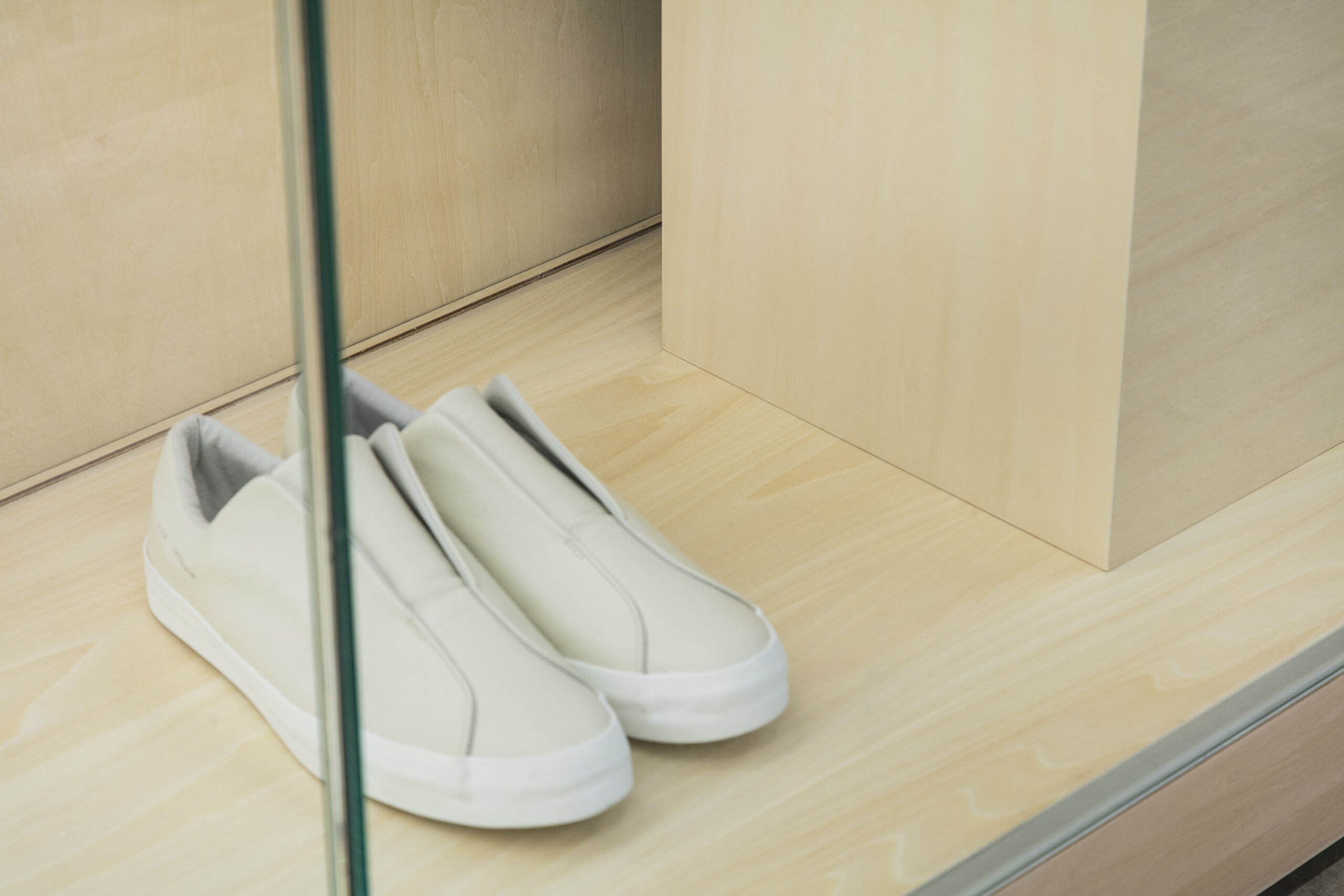 吉田カバンポーター (PORTER)とのバッグアイテム、リーガル (REGAL)とのシューズアイテム、ムーンスター (MOONSTAR)とのスニーカーなど、様々な日本ブランドとの共同製作アイテムを中心に展開されるお店として、「日本」を感じられる空間が求められた。