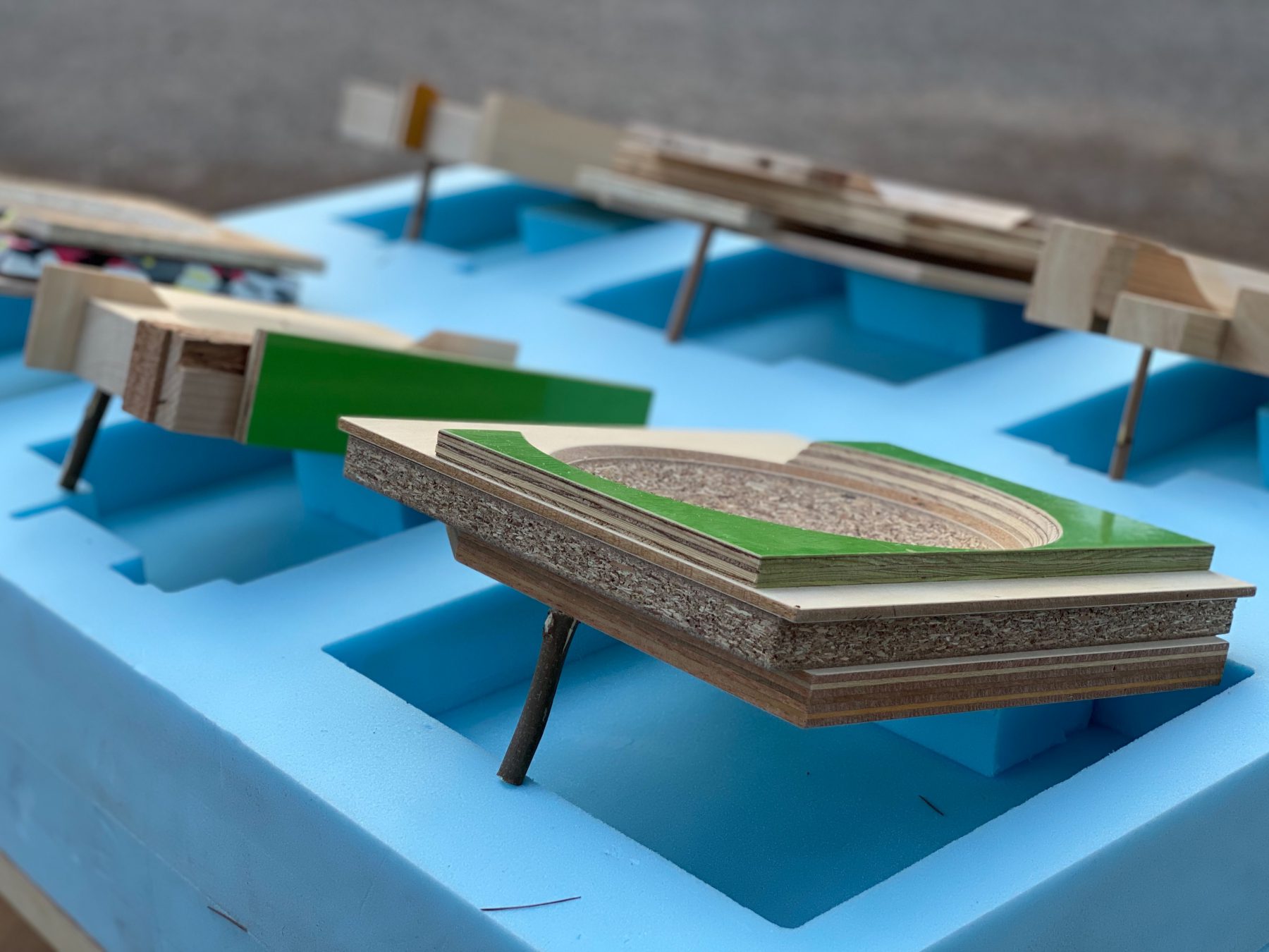 建築家スキーマ建築計画/長坂常(Design)が回転加工のあり方とそれによって生み出されるデザインを考え、工務店であるTANK/福元成武(Product Realization)が実現に向け加工機を作り出し、プロダクトまで制作した。