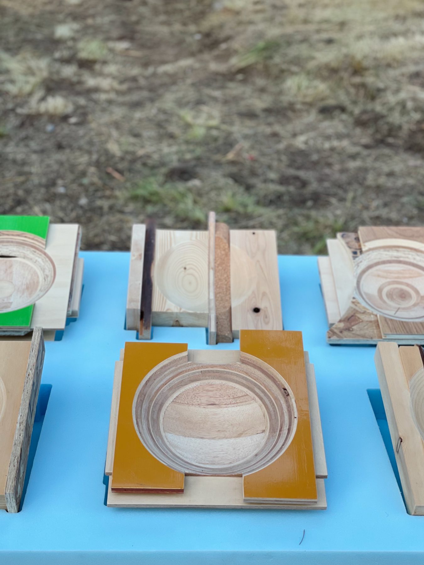 オブジェクトの回転と直角方向に回転するものをZ方向に近づけると、そのオブジェクトが回転しながら斬られ、結果がお椀上にくり抜かれる。今回、加工対象となるオブジェクトはTANKにあった端材を水平方向に組んだものと、垂直方向に組んだもの2種類作った。